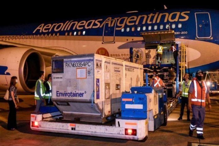 Aerolíneas Argentinas lleva completados un total de cinco vuelos a la República Popular China, en los cuales fueron trasladas 3.659.200 de vacunas producidas por el China National Pharmaceutical Group Corp.
