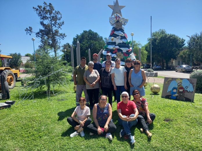 En la mañana de este ultimo viernes, el Taller de Arte que funciona en la Casa de la Cultura armó el tradicional Arbolito de Navidad. Las integrantes del taller, a cargo de la profesora Ethel Piedrabuena, vienen trabajando desde hace un tiempo para materializar la labor de hoy. También, como todos los años, los electricistas del municipio cumplen un papel fundamental, ya que esta noche, el Arbolito, lucirá de la mejor manera. El Taller de Arte Municipal, además del tradicional arbolito, también trabajo en distintos paseos públicos de la ciudad, al igual que Cicloturismo Basso