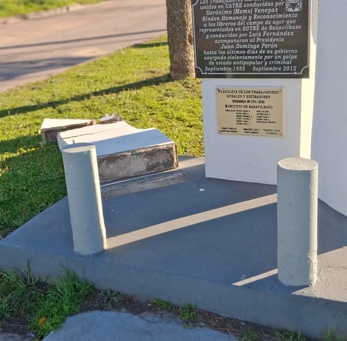 La Municipalidad de Basavilbaso lamentó los actos de vandalismo ocurridos en la Plazoleta de los Trabajadores Rurales y Estibadores, ubicada en Avenida L. N. Alem, en su intersección con calle Eva Perón.