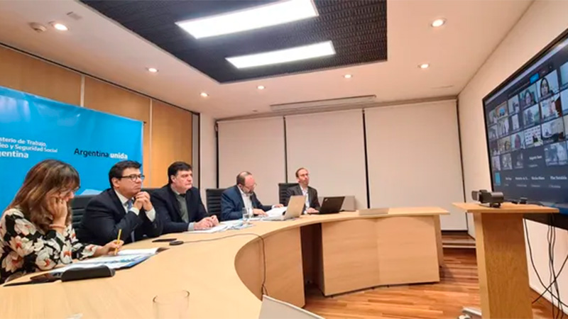 La plenaria entre sindicalistas, empresarios y miembros del Gobierno nacional se llevó a cabo por videoconferencia para determinar la actualización del haber mínimo y las prestaciones mínima y máxima por desempleo.